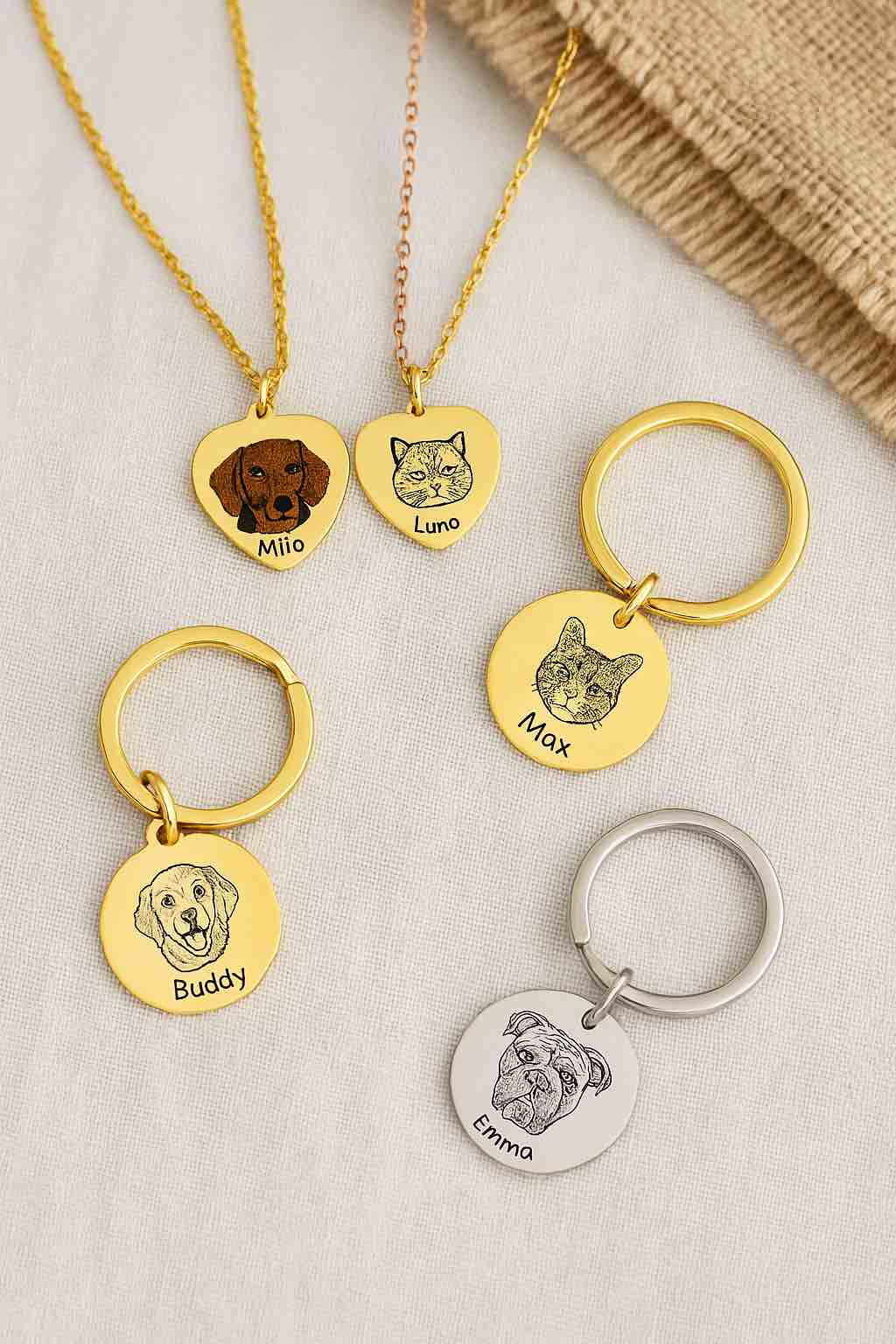 Ob als Halskette, Armband oder Schlüsselanhänger – verewige dein Haustier in einer einzigartigen Gravur. Wähle zwischen Herz- oder Kreisform und personalisiere dein Schmuckstück.