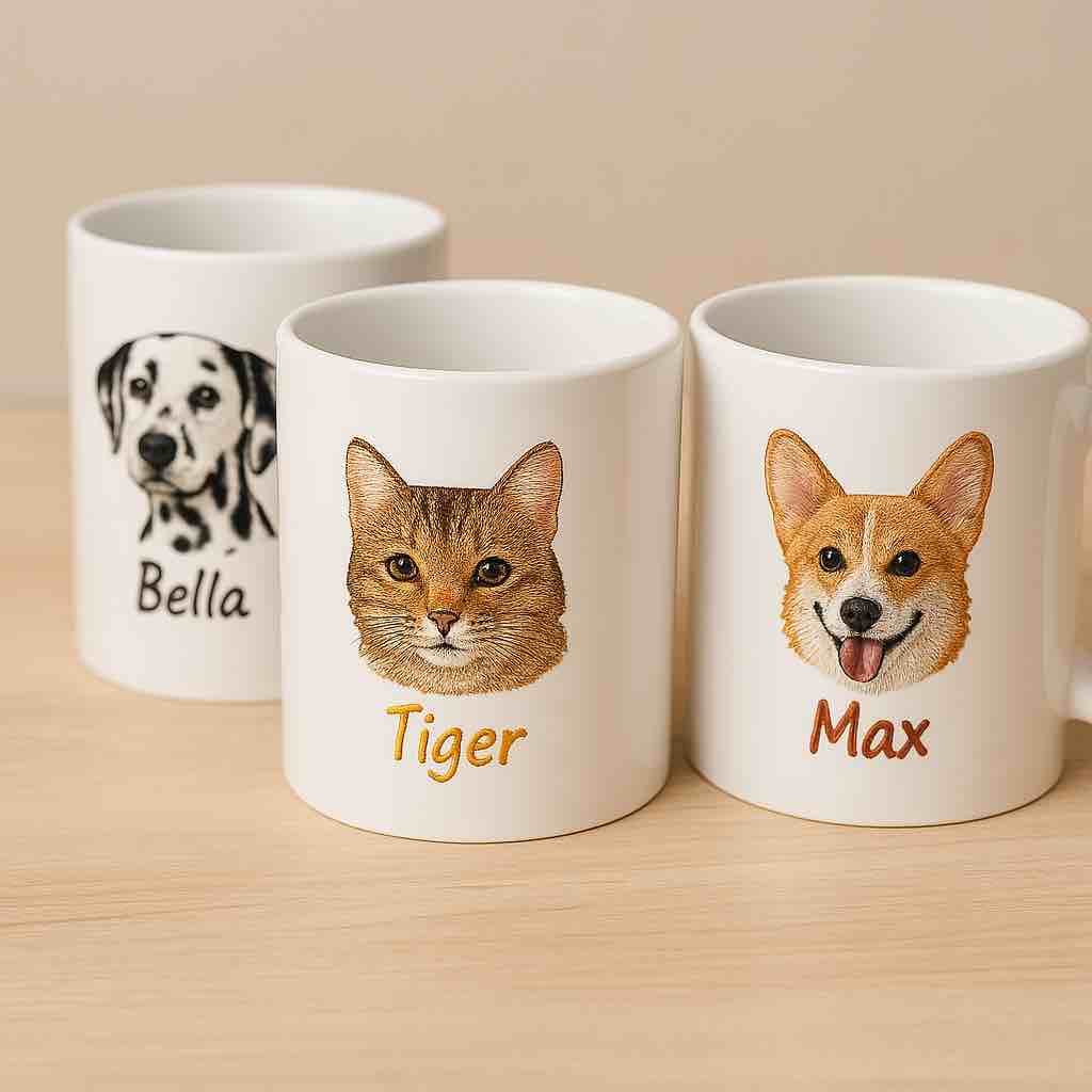 Dein Haustierfoto wird in eine Illustration verwandelt und anschließend hochwertig auf die Tasse gedruckt.